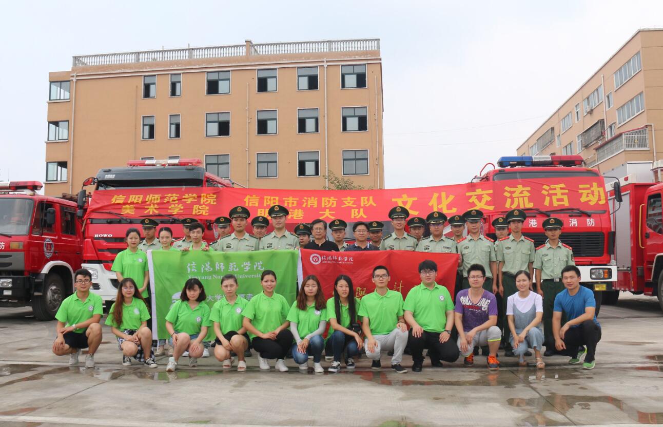 7月3日,太阳成集团tyc33455“三下乡”社会实践之“暑期文化艺术进军营”活动于信阳市消防支队明港大队展开。我院党委书记刘根货,党委副书记杨轶中,团委书记张锐、教师张峰、辅导员饶海虹一行与“三下乡”志愿者们一同到明港大队进行文化交流活动,明港消防大队大队长郭恒,中队长周勇热情接待。