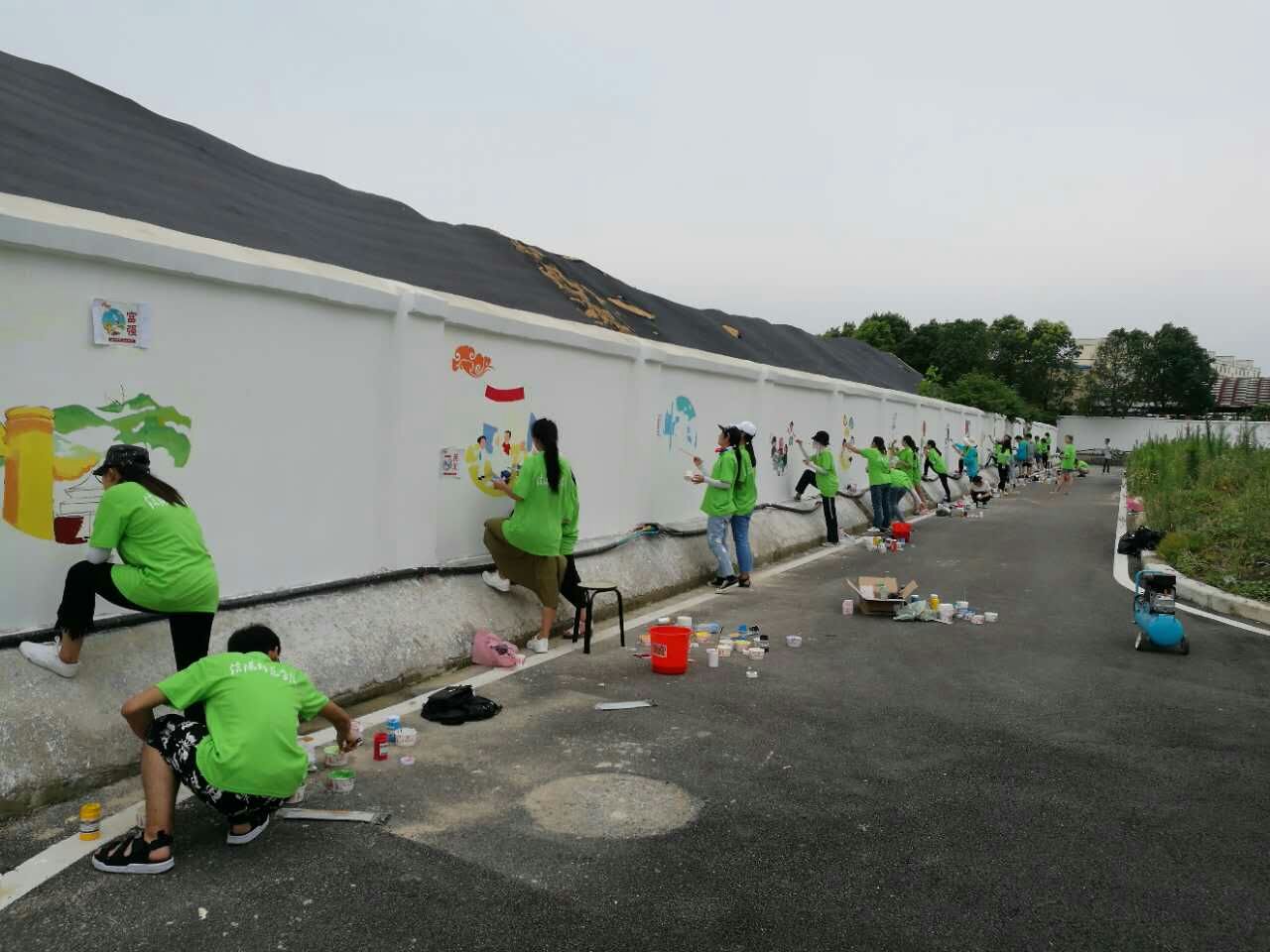 为进一步弘扬志愿服务精神,助推信阳市文明城市创建,7月8日,由太阳成集团tyc33455党委副书记杨轶中,教师李小滨带队,30余名学生组成的志愿墙绘服务队,深入潢川县开展墙绘实践活动。