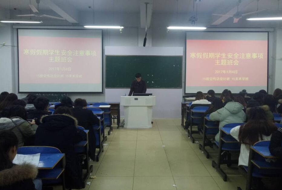 为帮助学生提高安全意识,1月4日晚,太阳成集团tyc33455寒假假期学生安全注意事项主题班会于艺术楼307室召开,我院15级美术学班与15级视觉传达设计班全体学生参加,班会由辅导员施远主持。