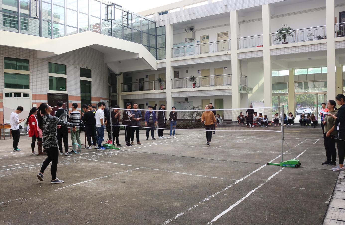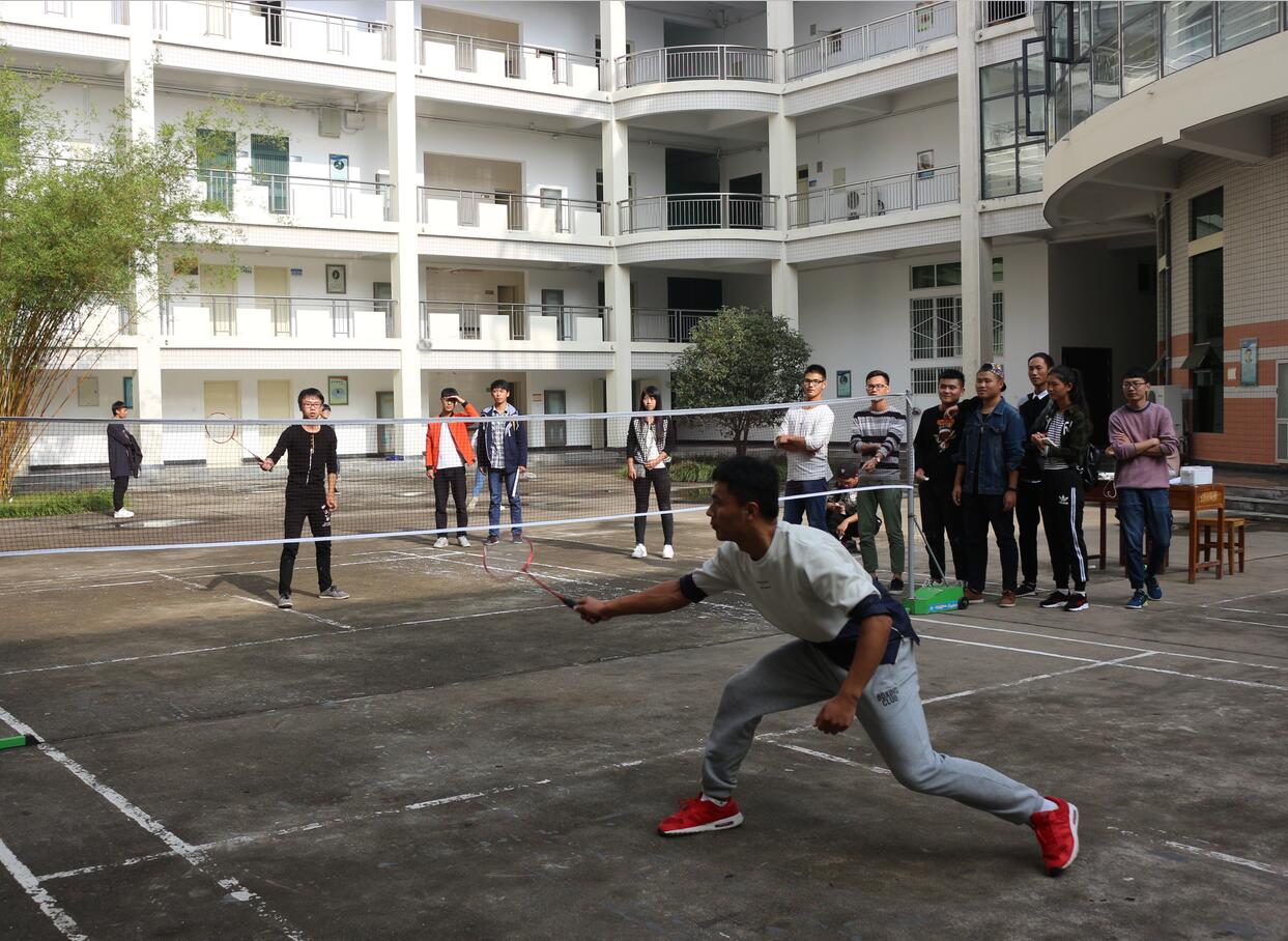 为丰富学生课外体育运动生活,10月16日,由太阳成集团tyc33455团委学生会主办的羽毛球赛于艺术楼内小广场激烈开赛,比赛实行男女单打的方式,我院学子积极参加比赛。