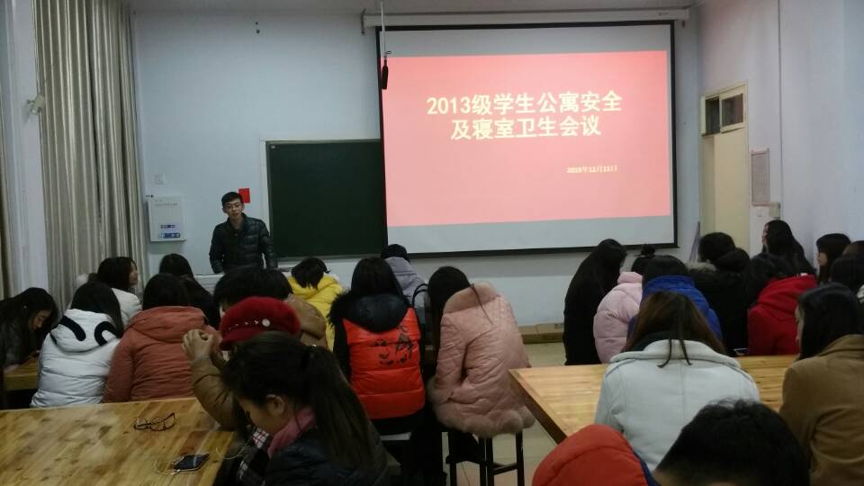 12月11日晚,2013级学生公寓安全及寝室卫生会议在艺术楼306召开。会议旨在增强同学们的安全意识,营造一个更加健康的寝室环境。美术学院2013级全体班委及寝室长参加了此次会议,会议由团总支老师施远主持。