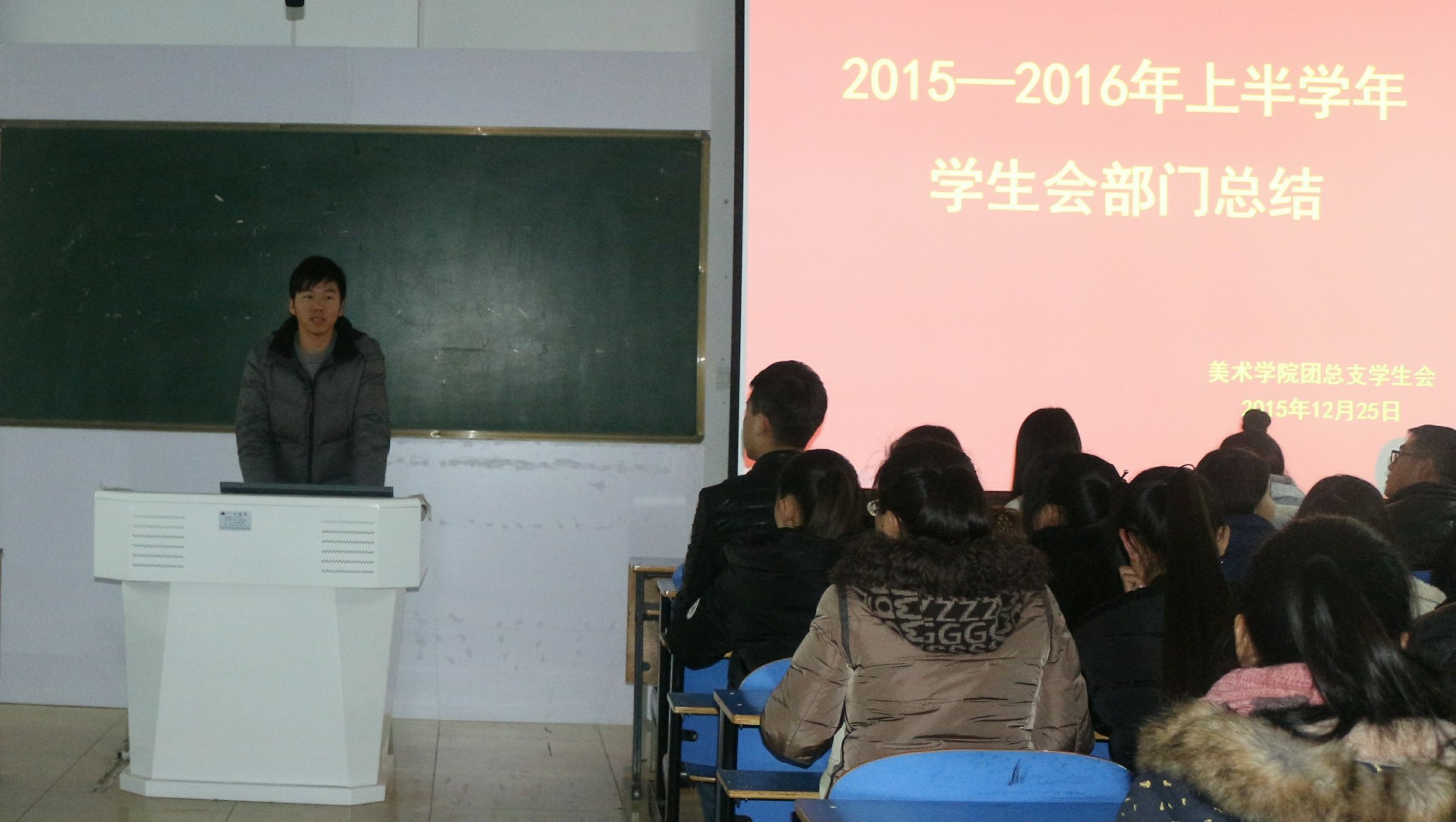 12月25日晚,美术学院团总支学生会年度总结大会在艺术楼307教室成功召开。本次会议美术学院学生会全体成员参加了本次会议。会议由学生会副主席贾珍主持。