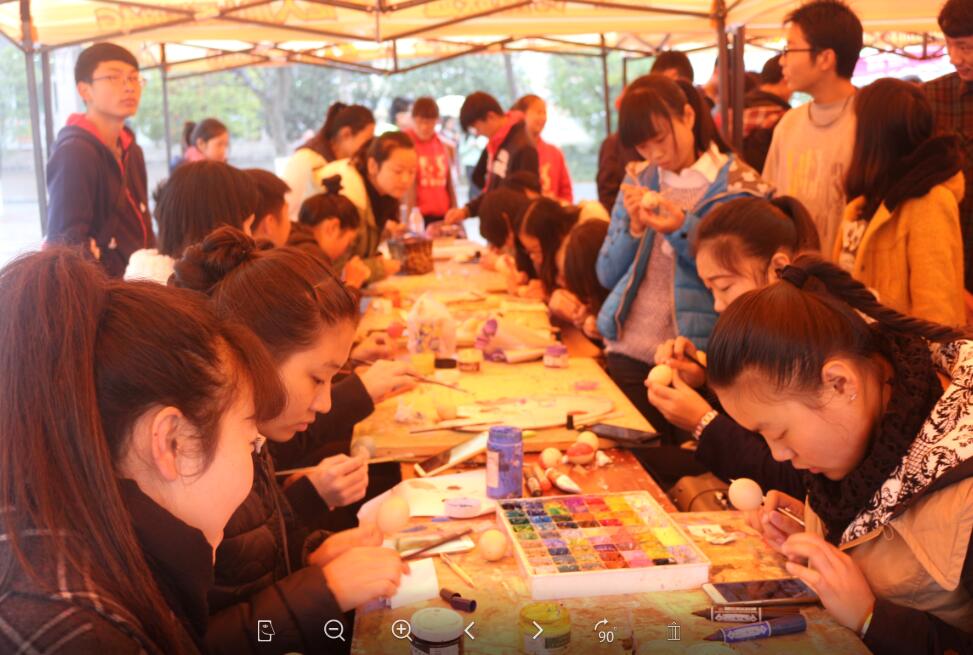 为了加强我校同学之间的交流,丰富我校大学生的课余生活,11月21日,由美术学院主办,大学生美术爱好者协会承办的2015“青春由我,手绘彩蛋”大赛在八餐小广场成功举办。