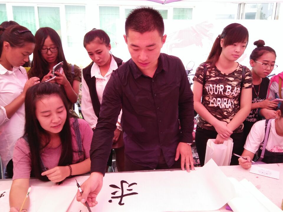 9月24日,美术学院2013级美术学班热烈开展了赠字画活动。我院张峰、李娟老师也亲自到场指导,2013级美术学班的同学们都积极的投入到活动中来。