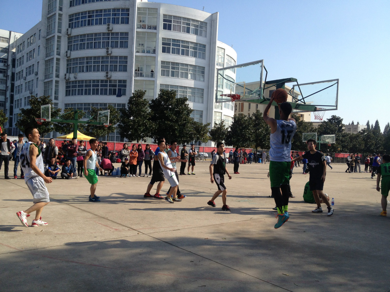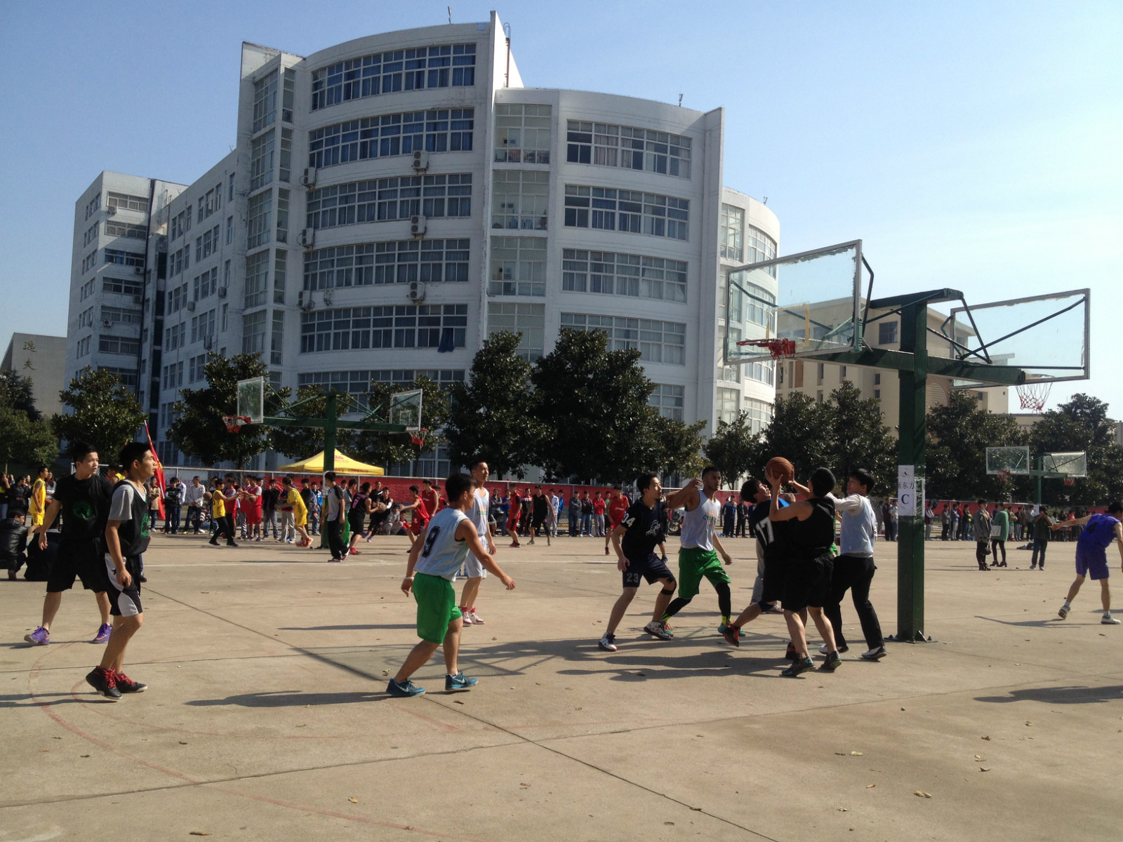 11月6日,信阳师范学院“雷速杯”美术学院与教育科学学院的对决在西操场篮球场激烈开赛。