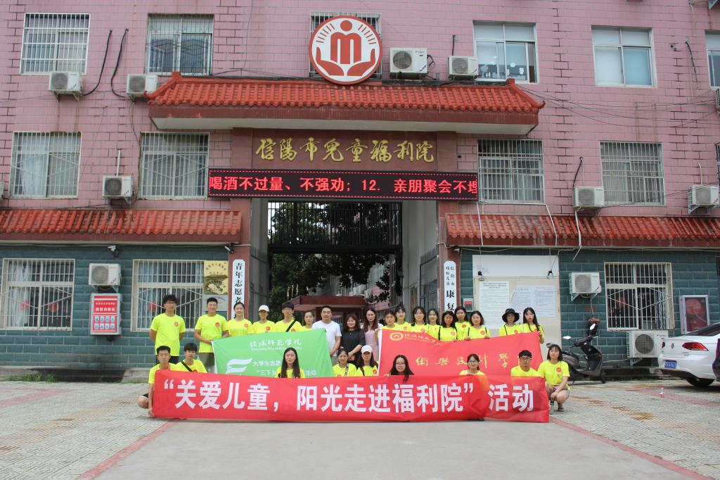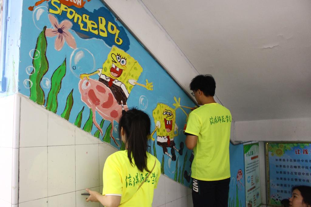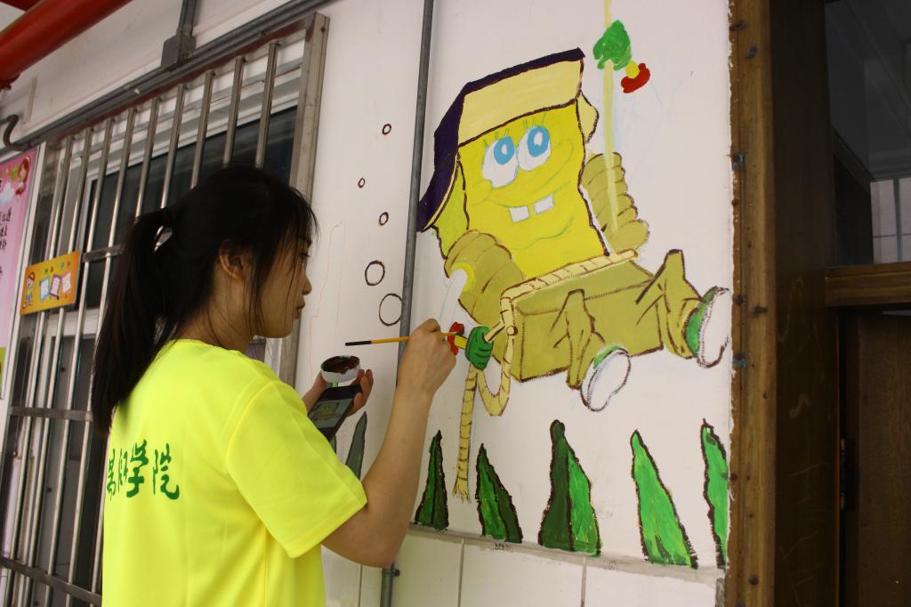 为关爱社会弱势群体,帮助儿童福利院打造一个温馨祥和的生活环境。7月7日—8日,由团委老师郑波、胡霁芳带队,我院暑期三下乡26名社会实践志愿者,深入信阳市儿童福利院开展“关爱儿童,阳光走进福利院”主题墙绘实践活动。