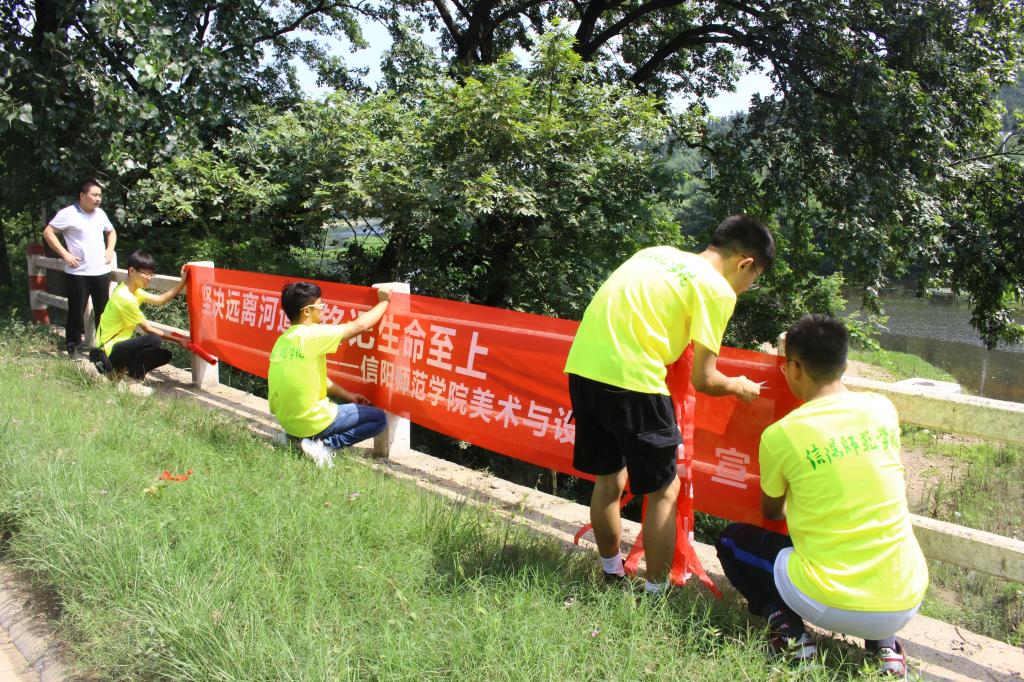 为提高青少年的安全防范意识和自救自护能力,减少夏季青少年溺亡事件的发生。7月10日,我院暑期“三下乡”社会实践活动在团委老师郑波、胡霁芳和刘文忠老师的带领下深入信阳市部分县、镇开展防溺水宣传教育活动。