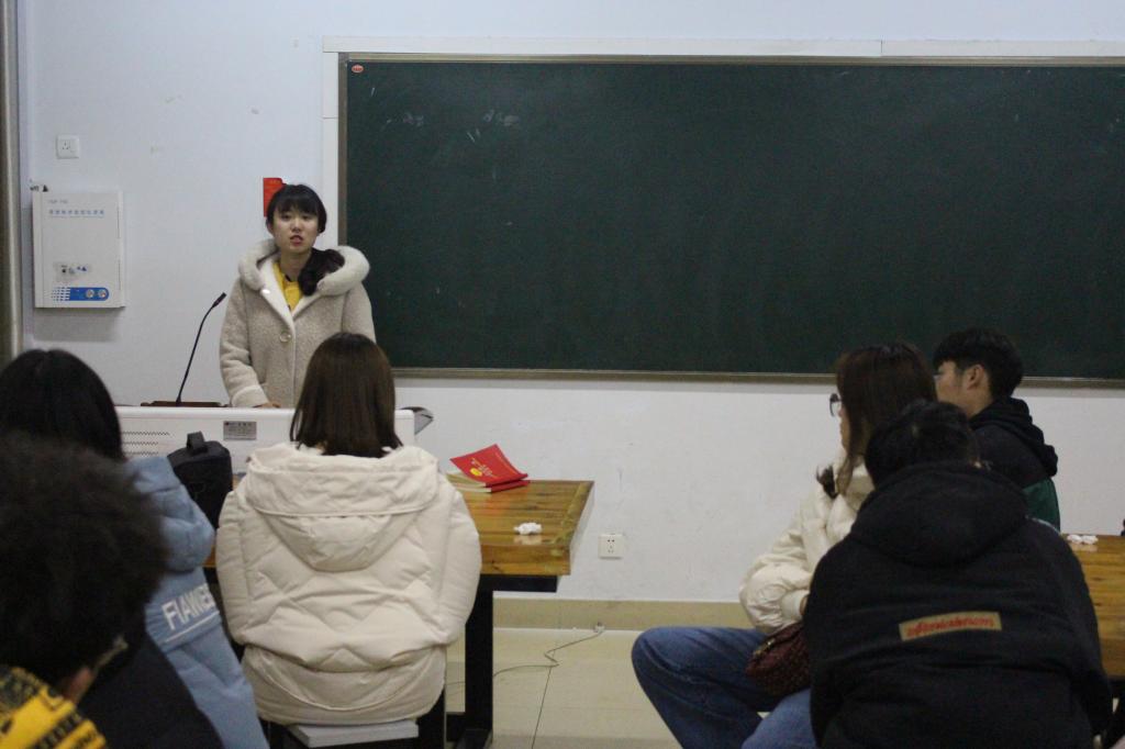 会议上,王鹤婷首先向同学们介绍了团支委领导下的班长责任制的主要内容和团支委成员的选拔方式,强调人员选拔要公正公开做到人员协调统一。随后,她具体说明了团支委成员的组成和成员应履行的责任,她希望在场的各位班长、团支书能够协调管理好班级和团支委的工作,做到班级在团支委的带领下获得更快更好的发展。最后,她强调,作为新时代的团员,在场的每位同学应当担负起自身使命,紧跟共青团组织的脚步,为广大共青团员做出表率,实现自身更好的发展。会议现场气氛热烈,同学们仔细倾听,认真学习。