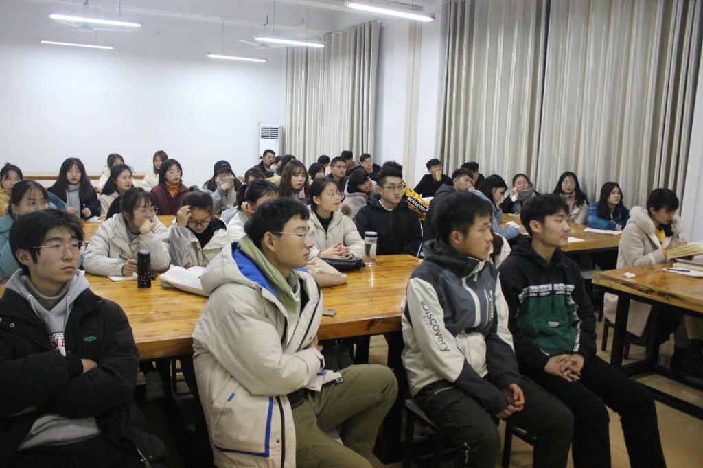 姬鹏飞详细介绍了班级团支委和班委会的人员组成结构,并根据人员构成讲解了该制度下的工作原则和工作方法。他指出,班级团支委和班委会要互相监督、互相促进,做到班级重大事件共同商讨、充分发挥团支部的民主集中制度。同时,他还积极鼓励班委会成员参与到班级管理中去,强调各班团支委和副班长要做好会议记录和工作材料保存工作,使班级工作做到“有迹可循”。最后,他还向同学们详细讲解了“三会两制一课”的具体内容,并且分析了如何落实“三会两制一课”制度,促进各班团支委工作的展开。