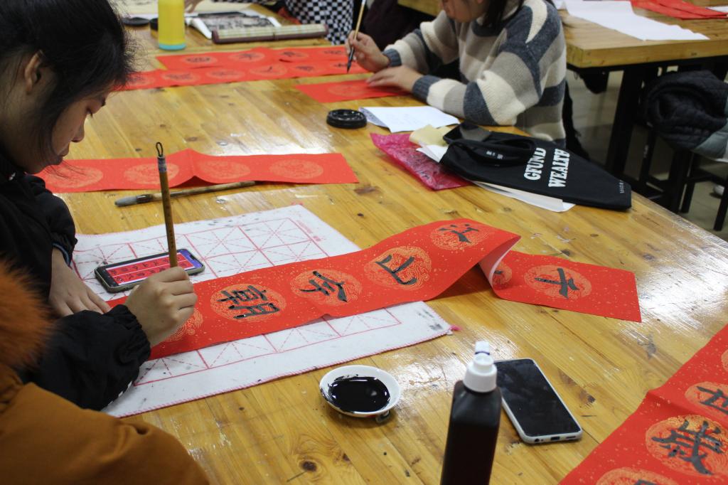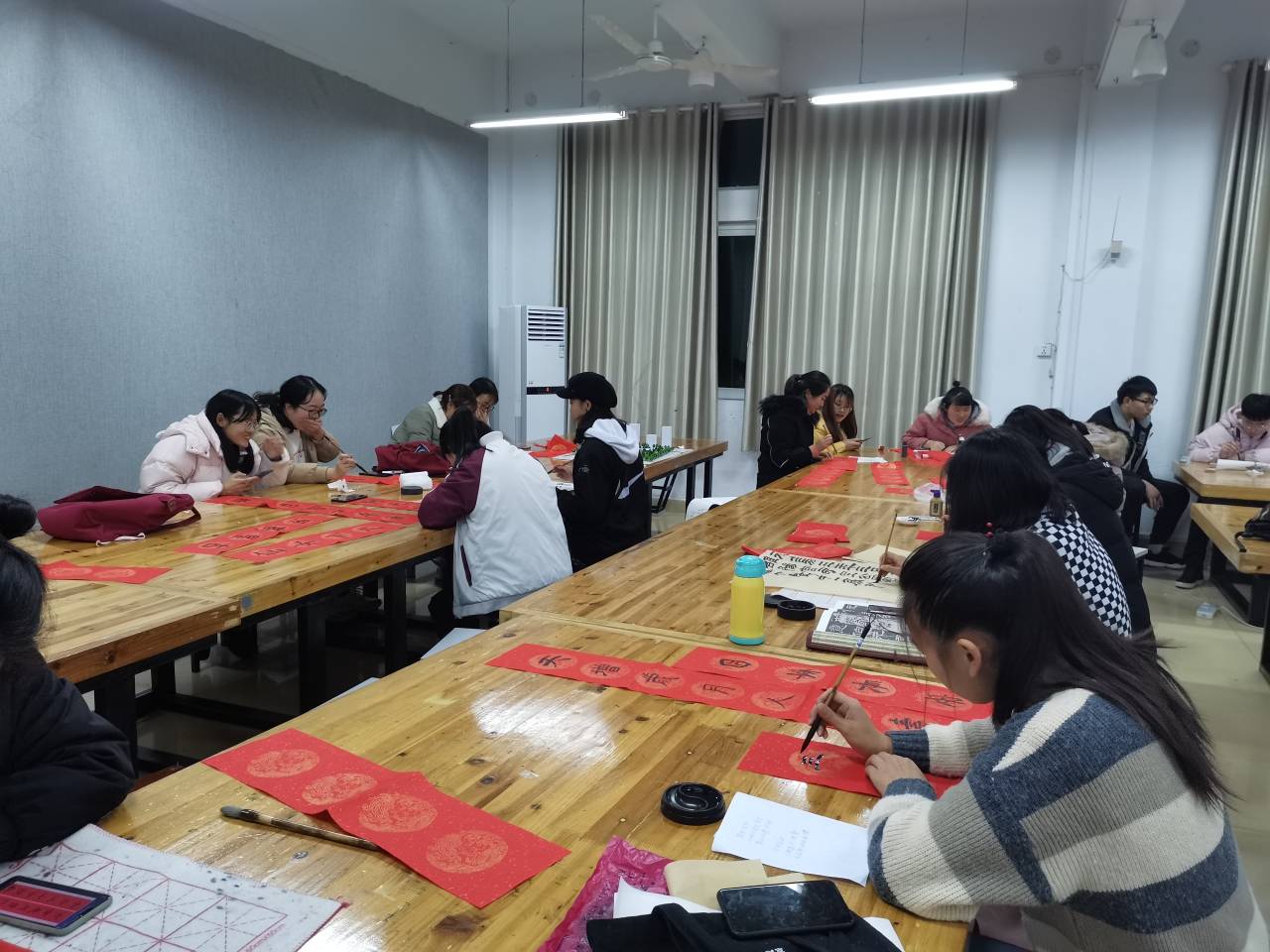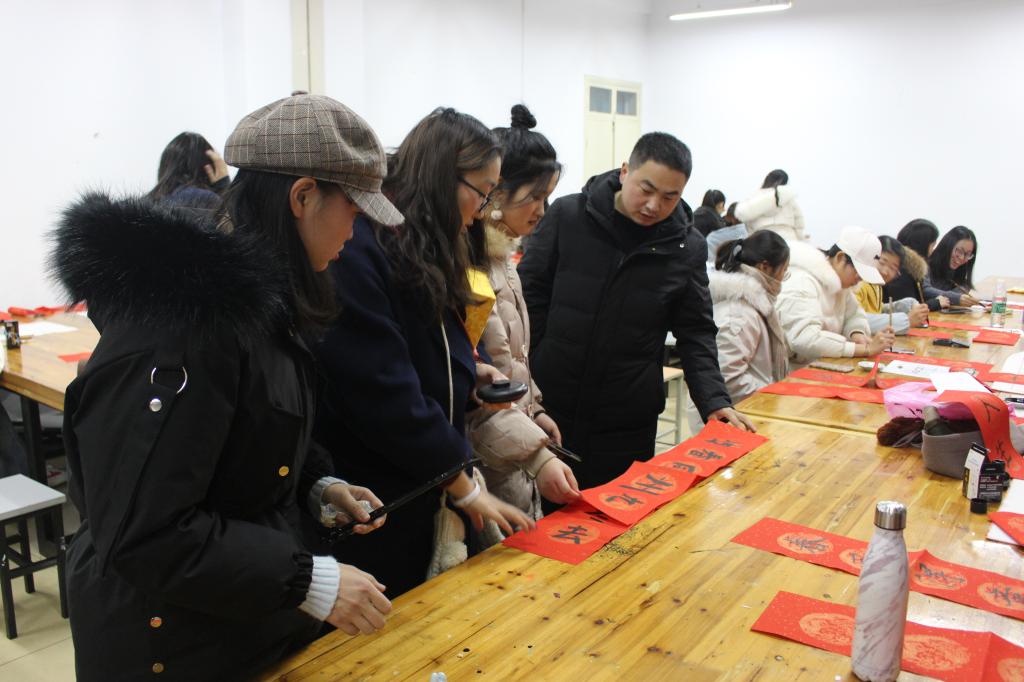 为迎接新年的到来,12月21日,由我院团委主办,大学生书法爱好者协会承办的“泼墨书春风,温暖递人心” 春联书写比赛活动于艺术楼216、217、306、308教室顺利举行,吸引众多学子踊跃参加,我院团委老师郑波亲临现场参观。