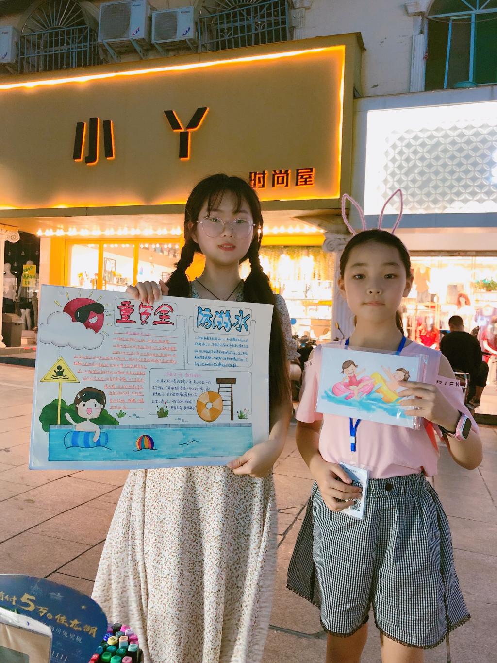 由于疫情的特殊原因,为保证自身和他人的安全,本次暑期“三下乡”社会实践活动采取就近原则,不跨区域流动。活动期间,志愿者们以自身专业为依托,用绘画作品宣讲青少年防溺水知识,吸引众多家长及青少年对防溺水知识的关注,通过组织防溺水安全演练,充分锻炼青少年的自救能力。志愿者们为社区内的青少年授课,依靠多媒体等多种形式播放防溺亡和自护教育宣传教育影片,开展防溺水的主题宣传教育,向家长和孩子们大力宣传防溺水安全知识,提醒家长在节假日期间特别注意对青少年的监督,防止其在危险水域或未知区域私自下水。随后,志愿者们通过宣传“关爱生命,预防溺水”等海报标语的方式,号召大家提高警惕,珍爱生命。