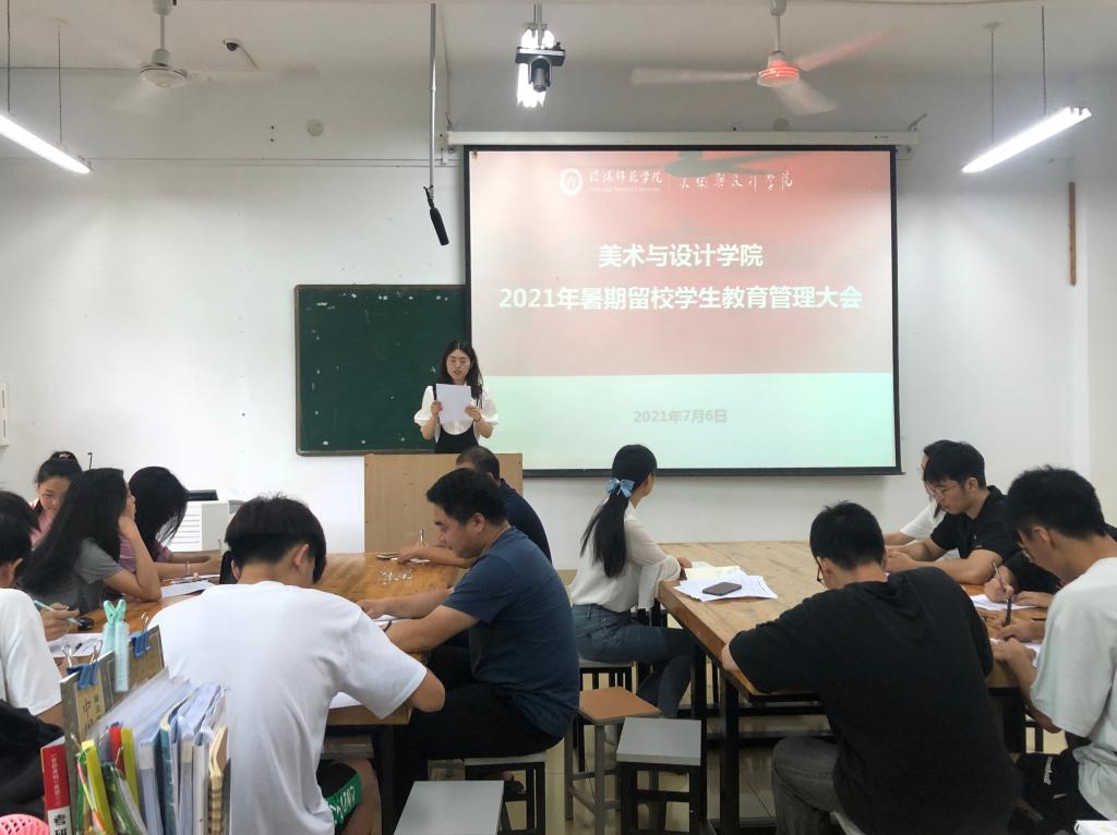 为了做好暑期留校考研学生的管理、服务工作,7月6日,我院在艺术楼308召开2021年暑期留校考研学生教育管理大会,教学秘书蔡森林,辅导员郑波、胡霁芳、明政、饶海虹以及2018级全体留校学生参加了此次大会。会议由胡霁芳主持。