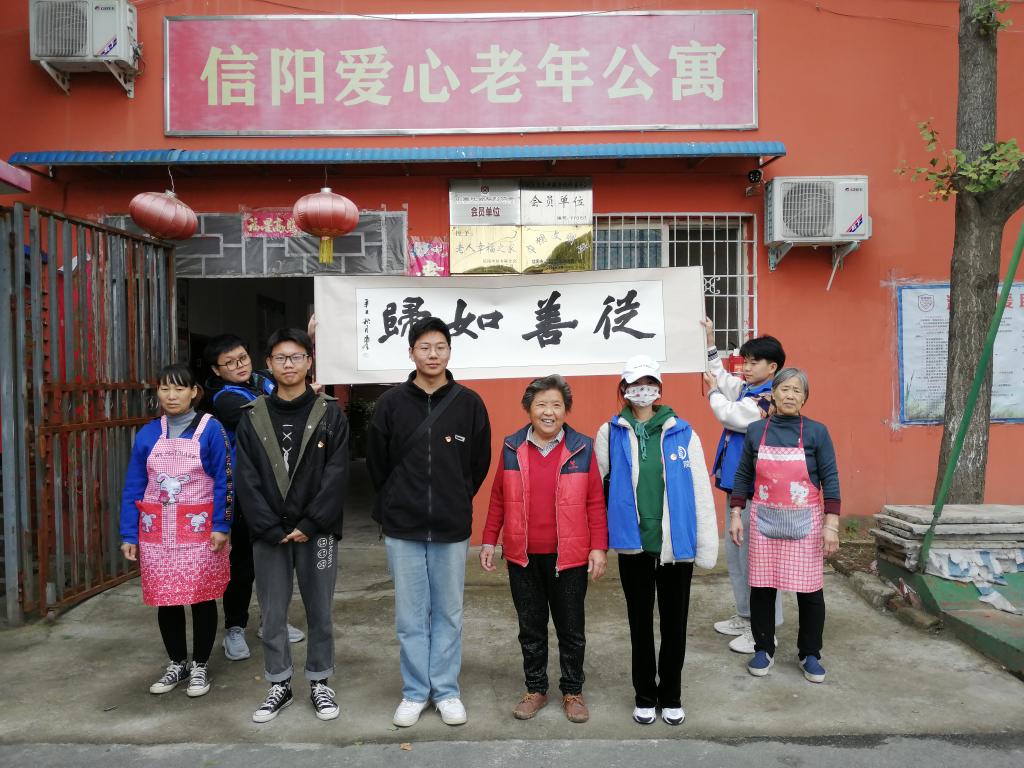 活动最后,志愿者们向敬老院赠送我院张峰老师的书法作品,祝福老人身体健康,开心快乐。养老院院长对此次活动给与了高度评价,非常感谢同学们的到来,希望同学们有空常来看看。