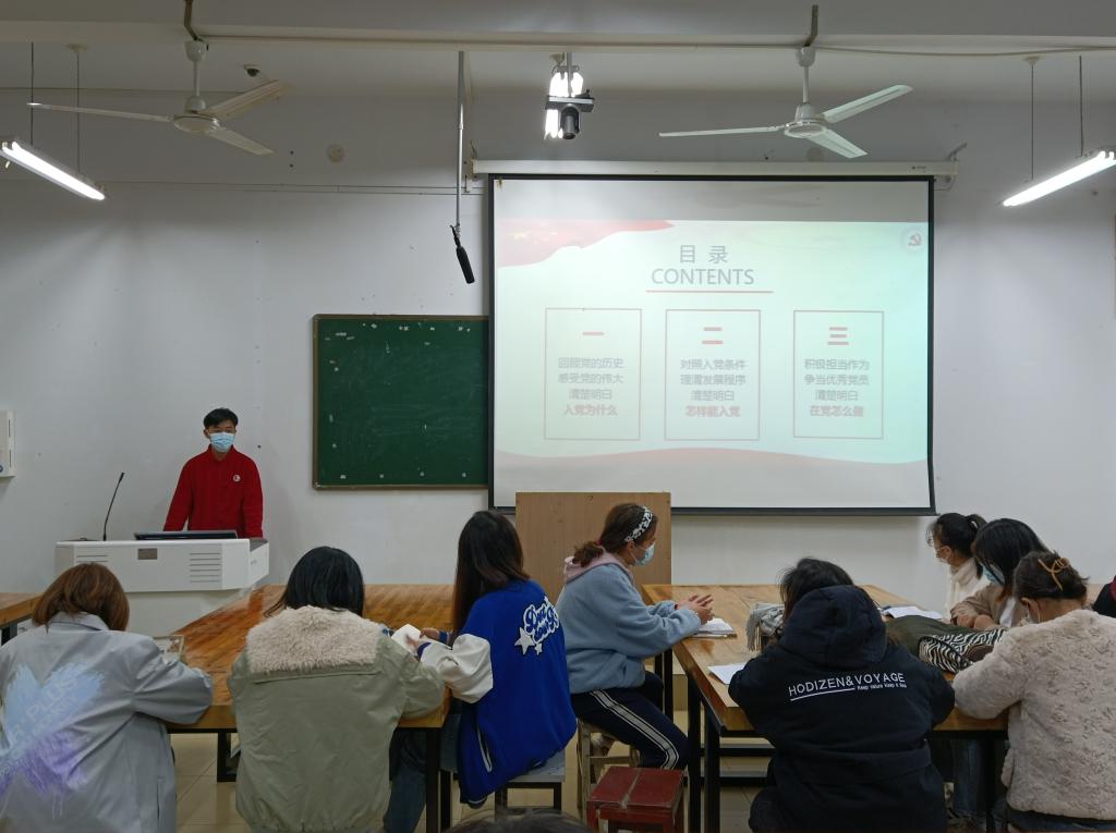 为提高我院学生党史素养和发扬奋斗精神,11月9日,我院于艺术楼308教室召开青年团校培训课程。课程由陈家艺、张靖袆、张捷三位同学主讲。