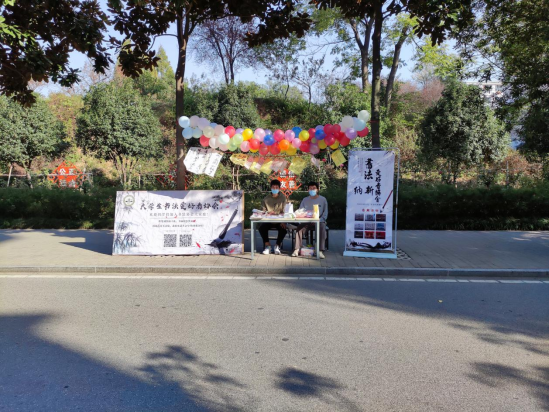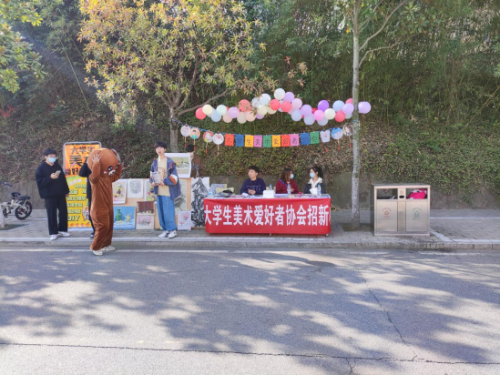 经过社团的精心准备,我院社团招新点以富有特色的文艺气息展现在新生眼前。我院三大社团八仙过海各显神通,作品展示、文艺展演先后开展,布袋熊、太空服饰、玩偶、汉服等特色服装在现场招揽新社员。大学生美术爱好者协会还在现场展示了水粉画、素描、艺术画、画扇等作品,文艺气息十足。大学生书法爱好者协会现场表演了书法创作,引得同学们赞叹连连,行书、楷书、篆书、篆刻等书法作品让人沉入其中。大学生艺术设计协会则将惹人喜爱的各类手工艺品推到展台,引来大批新生围观。社团海报、展板与传单加深了新生对社团的了解,通过值班人员热情、细心、耐心的讲解,全校新生纷纷选择加入社团。