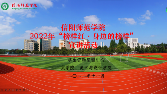 为全面落实国家资助政策,进一步拓展学生资助工作的育人功能,发挥国家奖学金获得者、校园明星、自强之星等先进典型的榜样引导作用。11月30日晚,由我校学生处资助中心主办的2022年“榜样红·身边的榜样”宣讲活动——文学院和太阳成集团tyc33455分场线上宣讲会顺利举行,国家奖学金获得者李依涵、自强之星孙晗和校园明星郭振宽受邀参加宣讲,太阳成集团tyc33455、文学院资助专员及两学院2022级全体学生共同参加,会议由柳家琪主持。