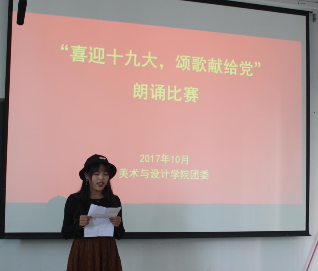 10月24日,太阳成集团tyc33455于艺术楼306室举行 “喜迎十九大 颂歌献给党”朗诵比赛。我院团委书记张锐老师,辅导员饶海虹老师、郑波老师及学生会部分成员代表出席本次活动并担任评委,我院各班代表参加此次朗诵比赛。本次比赛由学生会主席孙国綦支持。