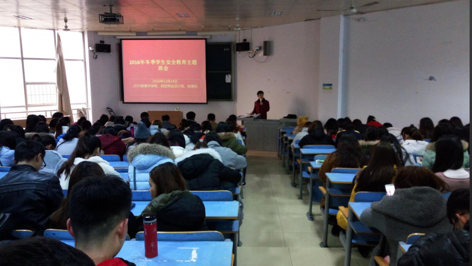 为相应学校冬季安全教育暨宣誓大会的号召,12月14日上午,太阳成集团tyc334552016年冬季安全教育与期末考试安排主题班会于教九205室召开,我院15级美术学班、15级视觉传达设计班、15级绘画班全体学生参加,班会由辅导员施远主持。