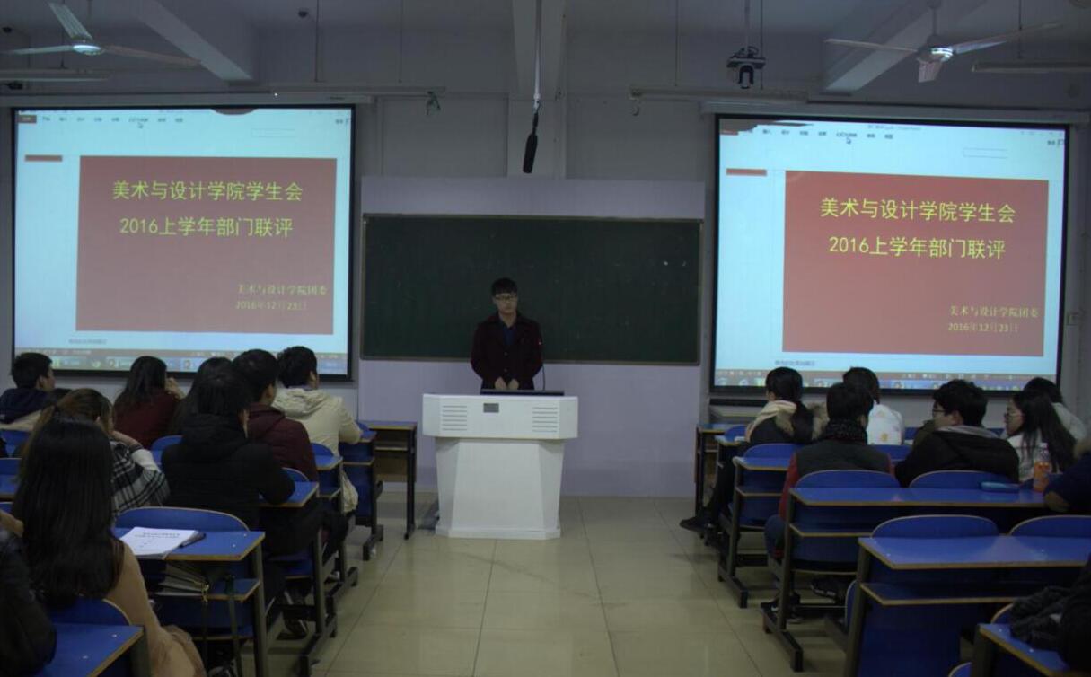 为加强学生会各部门建设,推进学生会工作有序开展,12月23日晚,太阳成集团tyc33455团委在艺术楼307室召开2016-2017上半学年部门联评大会。我院辅导员张锐、饶海虹以及学生全体成员共同参加了本次会议。会议由太阳成集团tyc33455学生会主席薛宇主持。