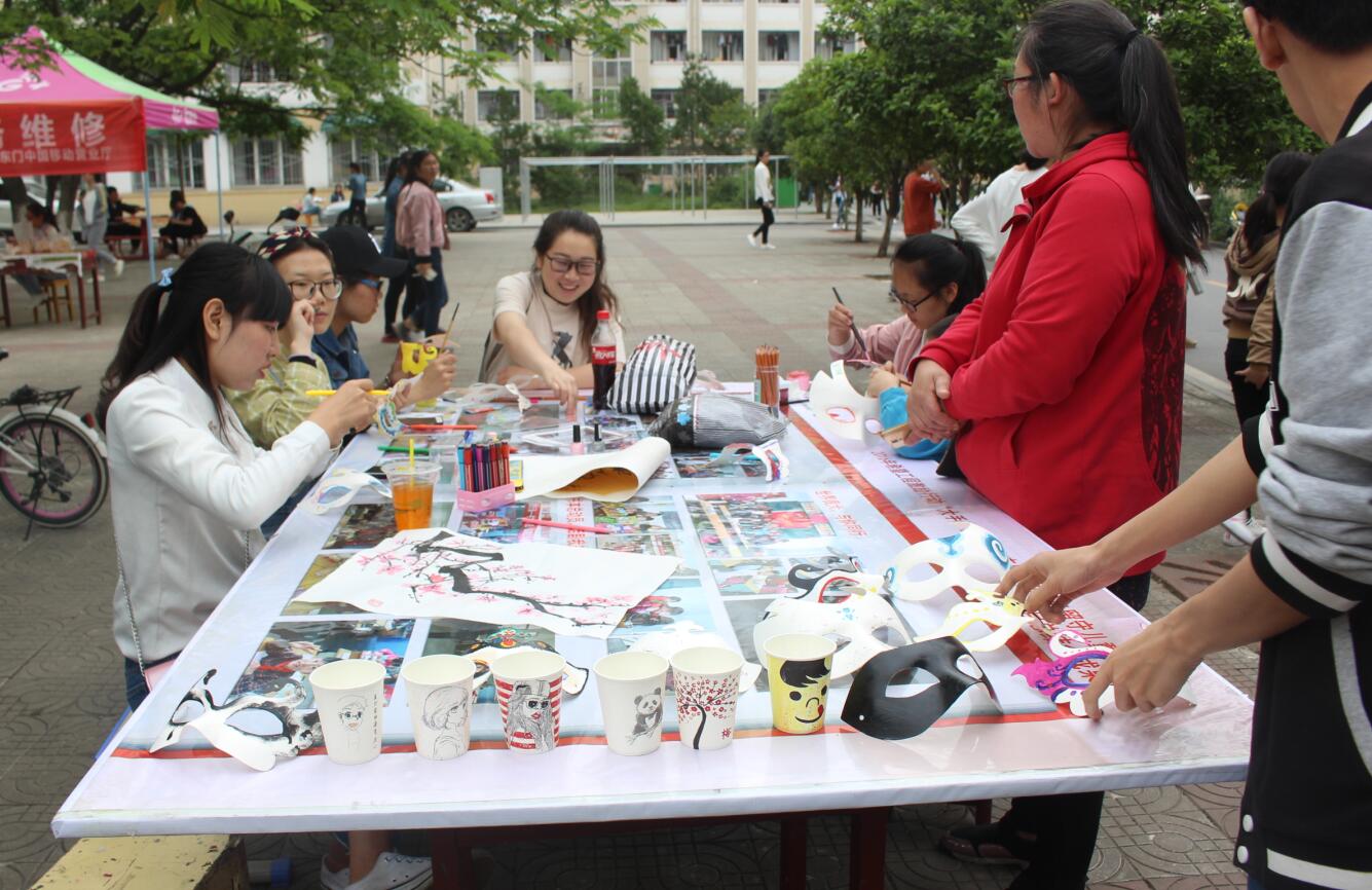 为丰富在校大学生业余生活,传播和弘扬传统文化,5月6日,由太阳成集团tyc33455主办,大学生艺术设计协会承办的“创意面具大赛”于八餐小广场成功举办。本次活动采取现场报名的方式,吸引众多学子前来参赛。现场由主办方提供纯白色的面具、丙烯颜料和绘画工具,以方便选手进行创作。选手领取面具后经过短暂的构思,便开始了底稿的绘制工作。 他们下笔谨慎,勾画流畅,将自己所思所想展现于面具之上。有的选手用色大胆、线条简洁,颇具现代主义风格。而有的选手则将世界名画《星空》、《杏花》等搬上了面具。也有选手独辟蹊径,将中西文化相结合,面具左边是中国戏曲花旦形象,另一半则是西方美人的面容,充分展现了中西文化的交流与碰撞。选手们的作品配色和谐,画面饱满,独具个人风格,引得过往路人纷纷驻足观看,形成了校园里一道独特的风景线。活动结束后,现场工作人员将作品一一展出,由专业人士与现场观众投票选出本次活动的优秀作品并颁发获奖证书。