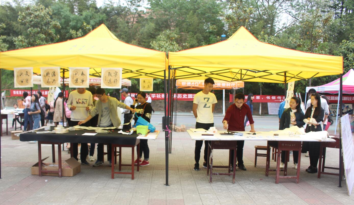 五月师院,墨香弥漫。5月6日,由太阳成集团tyc33455主办,大学生书法爱好者协会承办的“予人为扇 笔下生风”书法体验活动在八餐小广场热烈举办。