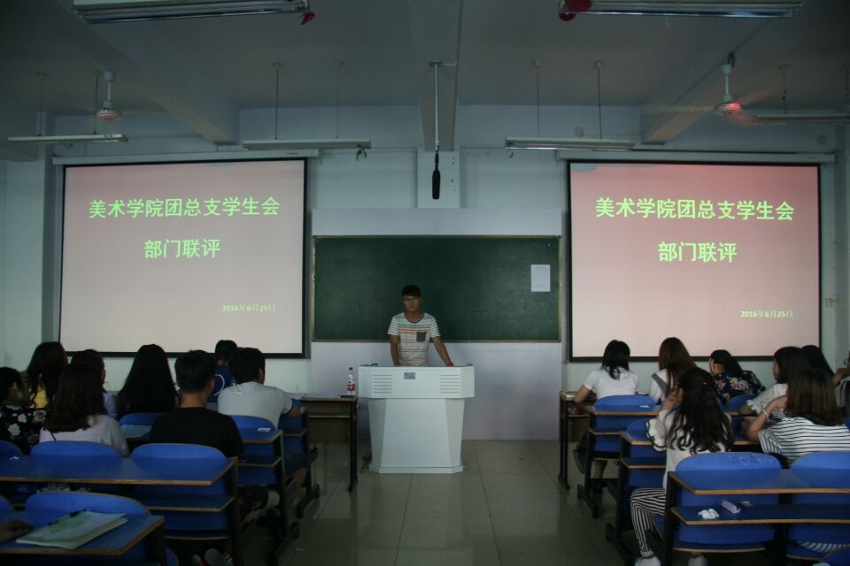 为加强学生会发展以及各部门建设,6月25日晚,美术学院学生会在艺术楼307举行2015--2016学年部门联评。全体学生会成员参与了此次会议,相互交流与学习。会议由学生会主席薛宇主持。