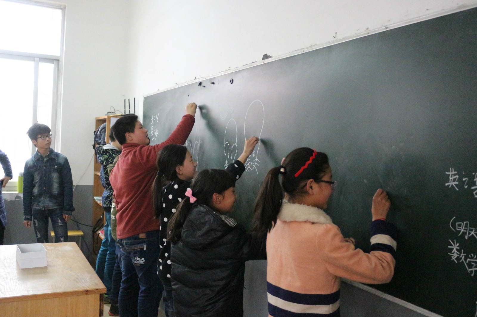 活动前期学院各位成员已作好了充分准备,并根据特长进行分组,还为小朋友们精心准备了文具、手工艺品及糖果等礼物。一进小学校园,“雷锋小组”便带领小朋友在操场上做起了游戏,欢声笑语响彻校园。短暂热身之后,“雷锋小组”正式开始第一节课——“雷锋课堂”。课堂围绕着雷锋知识开展有奖竞答,活动现场小朋友们纷纷举手抢答,气氛尤为激烈。随后,“雷锋小组”又向小朋友们详细的介绍了雷锋的优秀事迹,希望每位学生都可以向他学习,不断进步。接下来的课堂围绕着“心目中的海底世界”这一主题,充分调动小朋友们的积极性与想象力。“雷锋小组”结合美术专业的特长,在黑板上画出的章鱼、海星等动物栩栩如生,极大地激发了小朋友的想象力和创造力。最后小朋友们在大学生的引导下自发在黑板上作画,被评为优秀作品后不仅受到表扬,还收获了一份精美礼品,借此鼓励小学生不断加强自己的观察能力和动手能力。两节课匆匆过去,留下了无数珍贵的回忆。通过雷锋知识的竞答,相信他们将加深对雷锋精神的理解,争作雷锋的接班人。