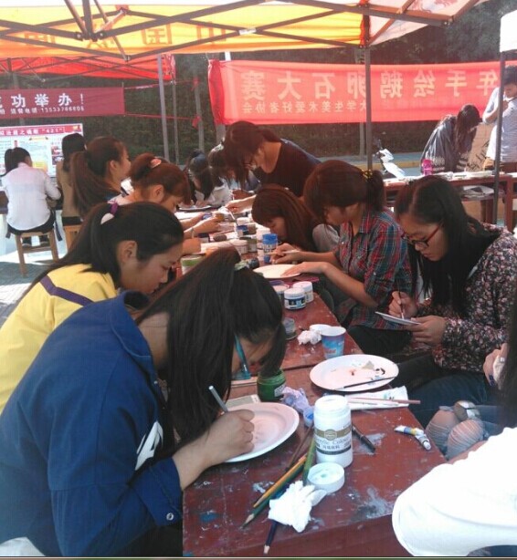 为丰富大学生日常生活,活跃校园文化氛围,提高学生艺术气质。 10月26日,由信阳师范学院美术学院主办,大学生美术爱好者协会承办的鹅卵石手绘大赛于八餐广场举行。