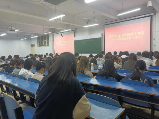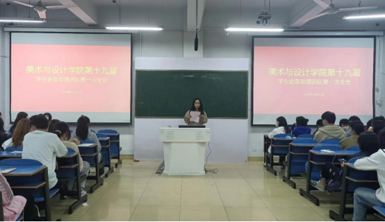为更好的推进我院学生会新学期各部门的进一步工作,促进学生干部自治管理,提高学生干部的素质修养及各方面的工作技巧,加强学生会的内部凝聚力。10月21日晚,我院在艺术楼307教室召开第十九届学生会及助理团队第一次全会,第十九届学生会成员全体参加此次会议,会议由学生会主席张文迪主持。