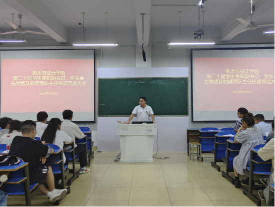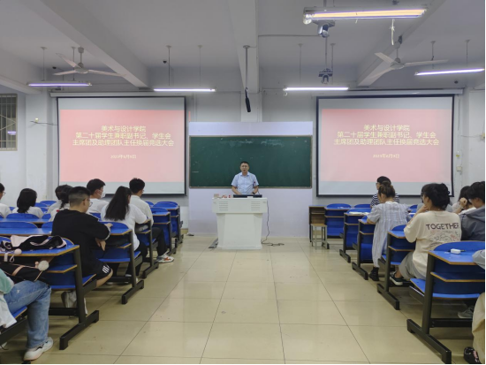 6月9日我院第二十届学生会主席团换届大会于艺术楼307教室召开。我院党委副书记周刚,辅导员胡霁芳、杨琳、郑波及第十八届学生会主席团担任大会评委,学生会全体成员共同参与。会议由我院郑波老师主持。