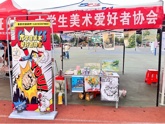 10月11日至13日,东操场迎来了一年一度的“百团大战”社团招新活动,大学生美术爱好者协会积极参与其中,为新生们呈现了一场艺术与创意的盛宴。