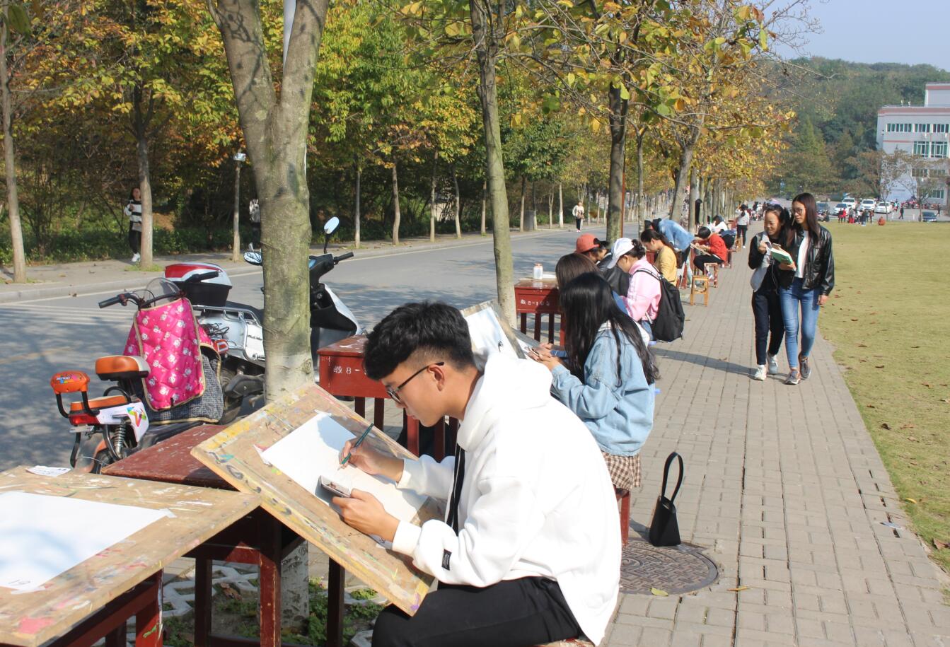为建设和谐校园文化生活,丰富我校大学生生活情趣。10月28日,由太阳成集团tyc33455主办、大学生美术爱好者协会承办的“邂逅桂花十月,绘出师院风采”活动正式开始。选手们在从艺术楼门口春申路旁至八餐小广场思齐路旁进行创作。