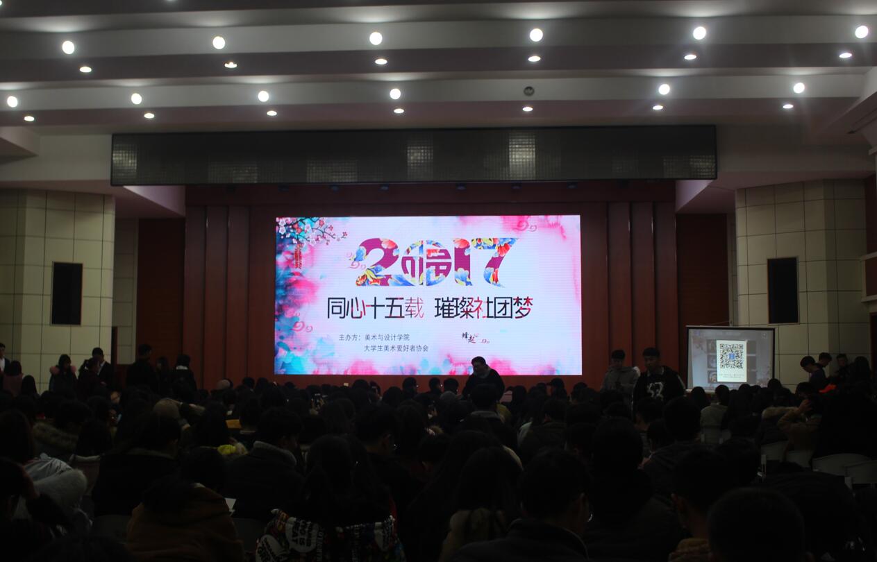 12月23日晚,由太阳成集团tyc33455团委主办、大学生美术爱好者协会承办的“同心十五载,璀璨社团梦”文艺晚会在逸夫楼报告厅顺利举行。太阳成集团tyc33455团委书记张锐,辅导员饶海虹、郑波及新生班主任邹青宸莅临晚会现场,与五百余名学生共同观看了本次晚会。