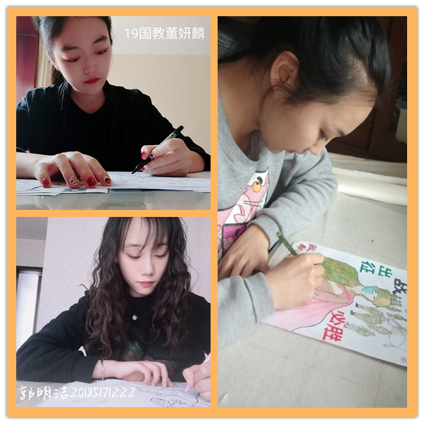 活动前期,我院大学生美术爱好者协会成员分工明确,提前做好了课程计划,规划时间,积极宣传。本次活动采取评审制度,活动参与者完成作品后,交于活动负责人并予评审。经录取后将作品拍照上传。本次绘画主题以歌颂祖国或是白衣天使支援国外为主,一张张作品体现了我国人民团结一致,共同抗疫的精神,以及奋战在一线工作者们的无私奉献,讴歌了祖国的伟大。活动后期,对优秀作品进行评选,分出一、二、三等奖颁发证书和给予学时。并由办公室统计参与者手绘情况,宣传部公布结果。