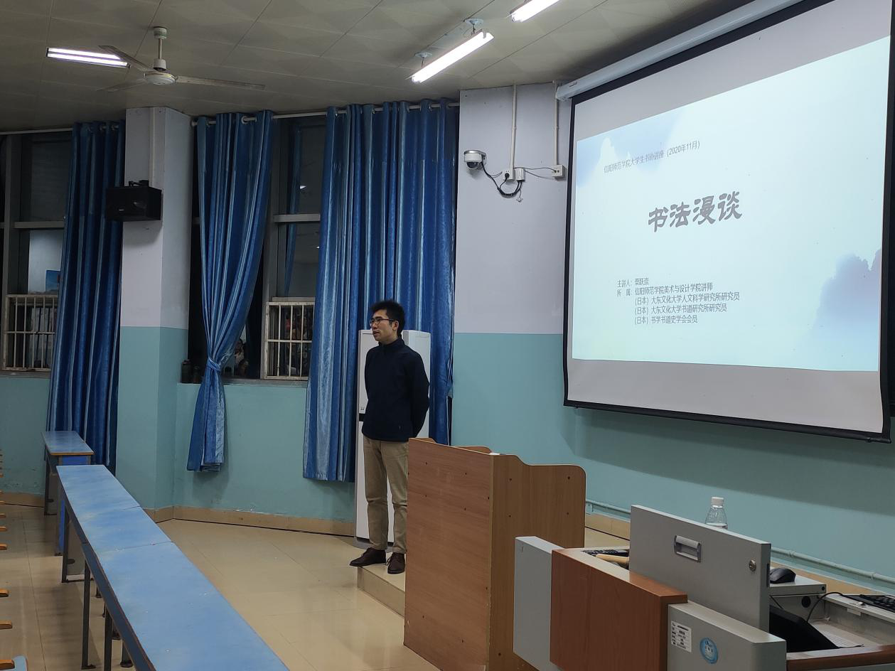 为了使大家对书法有更多的了解,11月8日我院大学生书法爱好者协会在教九楼105教室开展了“漫谈书法”知识讲座,本次讲座由我院栗跃崇博士主讲。