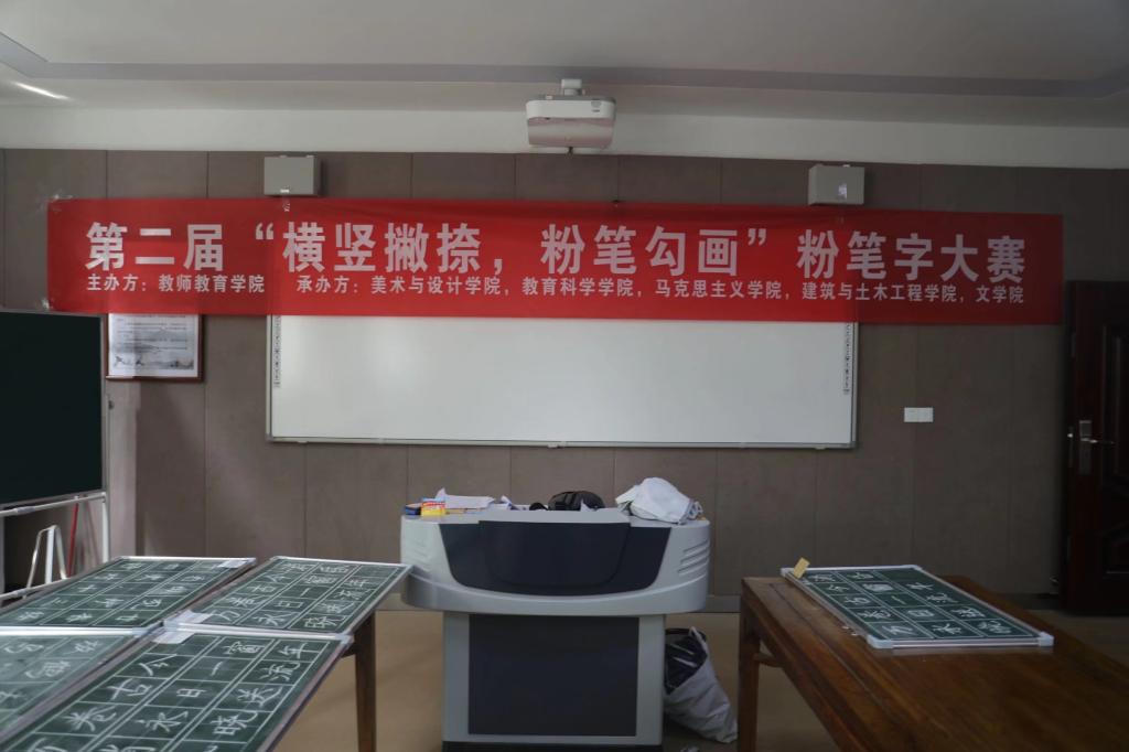 为激发我校同学练字兴趣,响应新课改,锻炼学生教学能力及教师教学必备技能,由教师教育学院行知教育工作室、习乐学社主办,大学生书法爱好者协会、教育科学协会、南湖理论研讨社、建筑爱好者协会、方圆秘书协会承办的第二届“横竖撇捺,粉笔勾画”粉笔字大赛,大赛于4月10日上午正式开赛,面向全校同学。