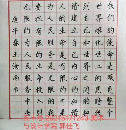 活动伊始,便受到了广大师生的广泛咨询,活动得到了积极响应,大家笔飞墨舞,充分展现了师院学子的精神风采,也展现了师院学子的文化底蕴,古人曰:见字如面,美好端庄的字体也彰显着其书写者的文化面貌,同时也展示素质教育的丰硕成果。