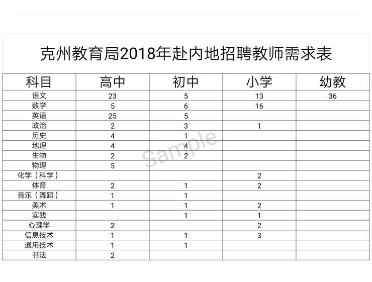 名 称 2018年-2019年新疆克州面向内地招聘学前及义务阶段特岗教师简章