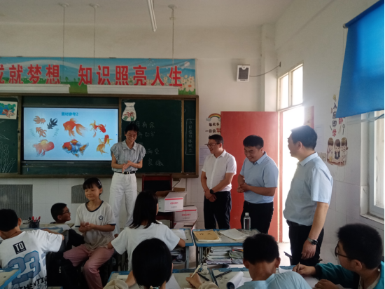 抵达学校后,周刚一行首先与学校校长张利军进行了简短的交流,了解当地教育情况后,他们立即深入教学现场,观摩了郑文雅的课堂活动,并为孩子们带去了画笔等小礼物,鼓励他们努力学习,快乐成长。
