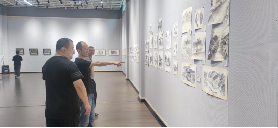 开幕式上,邹东升充分肯定了本次考察写生课程教学活动的优秀成果,赞扬了同学们爱学习、肯吃苦、能奋斗的学习态度,鼓励同学们要继续保持对艺术的热爱,坚持创作、用心创作,将我院本科生应有的艺术创作水平予以展现。同时,他还对2021级毕业创作做了安排,要求教师学生从大四上学期着手准备,留足时间创作,争取创作了一批优秀的高质量毕业作品。张江波对本次写生考察的宗旨进行了说明,对展览的后续工作进行了安排。开幕式结束后,带队教师与同学们现场交流座谈。同学们踊跃发言分享了自己考察写生的收获。带队教师则从专业创作角度和同学们做了交流点评,举例说明了各种细节需要理解掌握的绘画技巧,分析了同学们创作过程中的得与失,鼓励同学们积极创作,积极参加比赛。