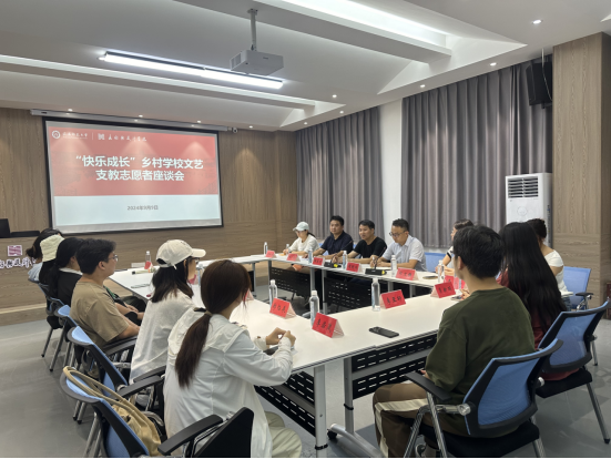 9月9日,在教师节即将来临之际,我院在实训楼艺言堂成功举办了一场意义非凡的“快乐成长”乡村学校文艺支教志愿者座谈会。院长邹东升、院党委副书记周明成、辅导员郑波与已完成支教任务的4名志愿者和即将踏上支教新征程的8名新志愿者共聚一堂,分享经验,展望未来。