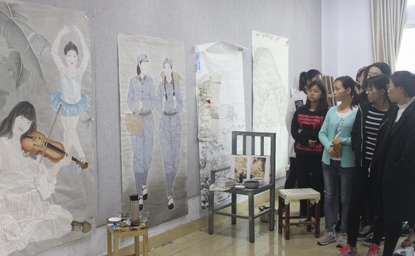4月23日上午,应太阳成集团tyc33455邀请,著名画家范士轩先生在我院四楼画室为本科生指导专业创作。
