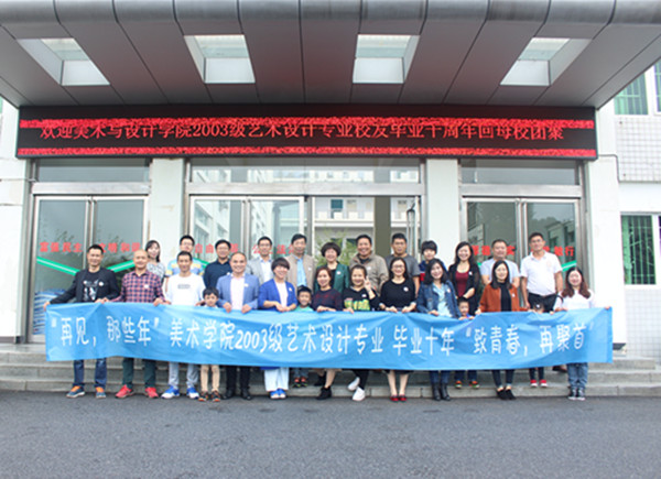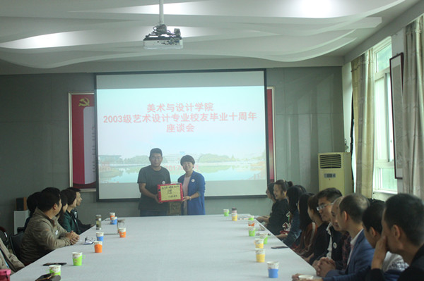 毕业十年梦团圆,十月国庆聚贤山。10月1日-2日,太阳成集团tyc334552003级艺术设计专业本科班毕业10周年之际重返母校,并于10月2日上午在艺术楼二楼会议室举行了师生座谈会。