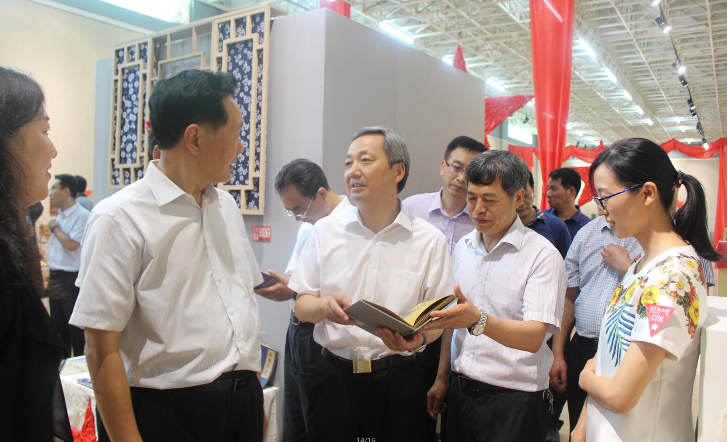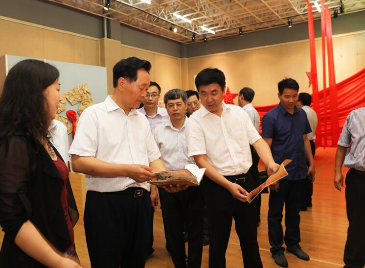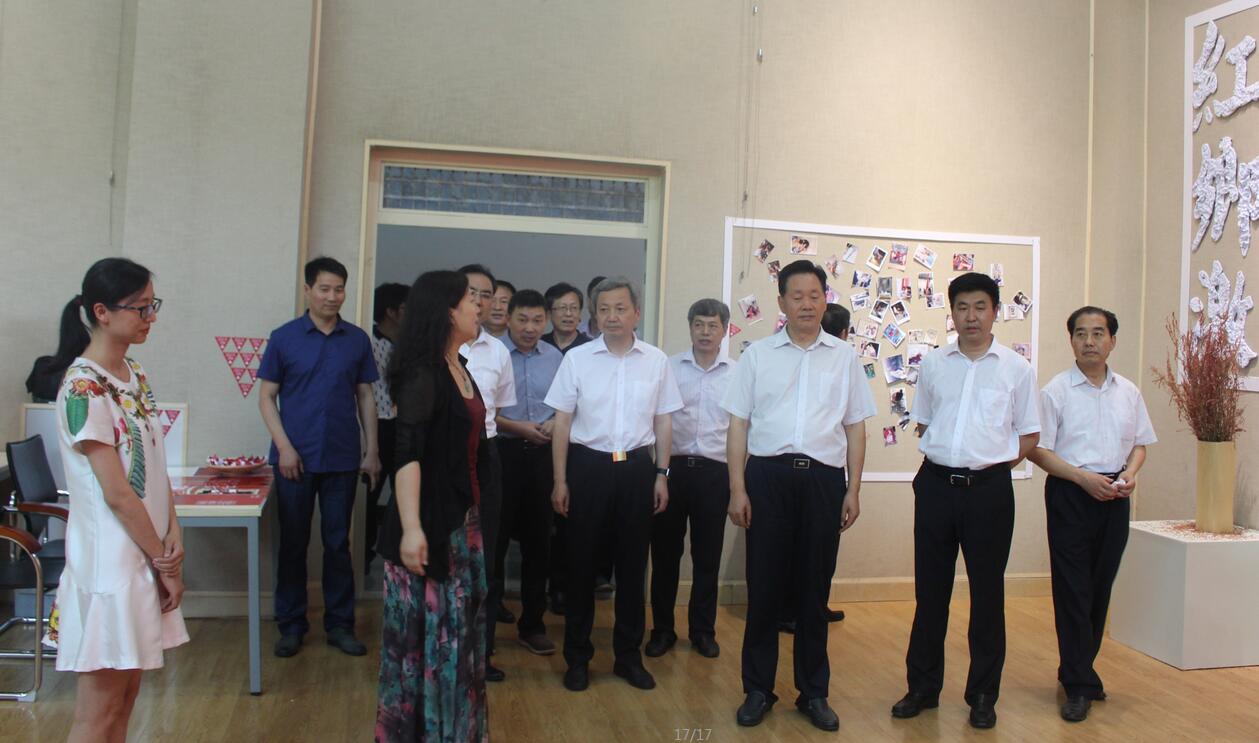 6月23日,省教育厅长朱清孟、副厅长尹洪斌带领厅办公室、发规处、基教一处、基教二处、职成教处、高教处、师范处、学生资助管理中心等部门负责人来我院参观指导'“红色乡土激情文创作品展。信阳市市长尚朝阳、副市长张明春,我校全体校领导和我院领导班子成员以及指导教师全程陪同参观。