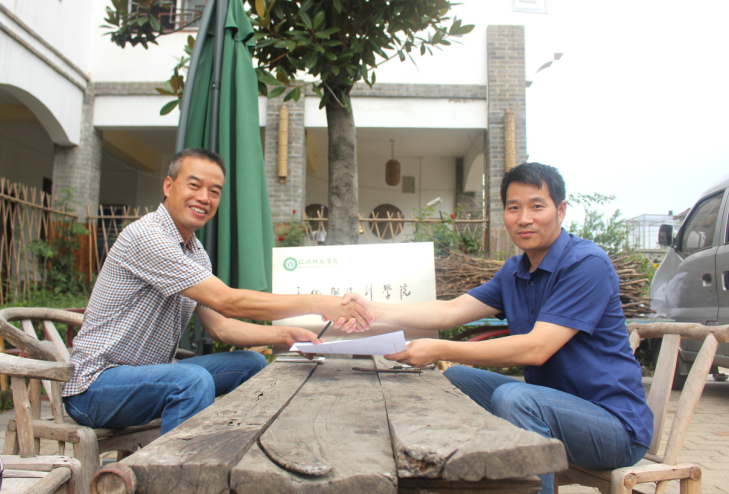 为进一步深化太阳成集团tyc33455转型发展和专业品牌建设,7月8日,太阳成集团tyc33455副院长邹东升、张伟一行参观考察了郝堂“花子驿”美术写生基地,并与郝堂“花子驿”美术写生基地签订了校企合作协议,为基地进行了挂牌仪式。
