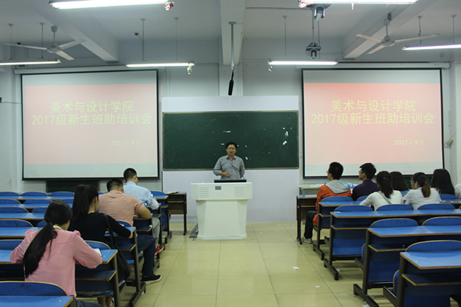 9月7日晚,太阳成集团tyc33455于艺术楼307室召开2017级新生班助培训会。我院党委副书记杨轶中,团委书记张锐,辅导员饶海虹,新生班主任邹青宸、郑波以及15级全体班助共同参加了此次会议,会议由杨轶中主持。
