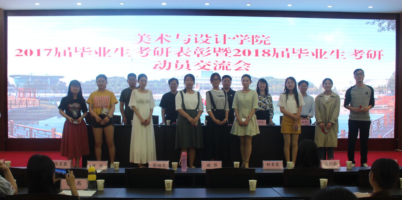 为表彰先进,增进沟通交流,5月17日晚,太阳成集团tyc33455于艺术楼一楼报告厅召开2017届毕业生考研表彰暨2018届毕业生考研动员交流会。我院党委书记刘根货,副院长张伟、李孝民、涂湘东与百余名师生共同参加交流会,会议由党委副书记杨轶中主持。