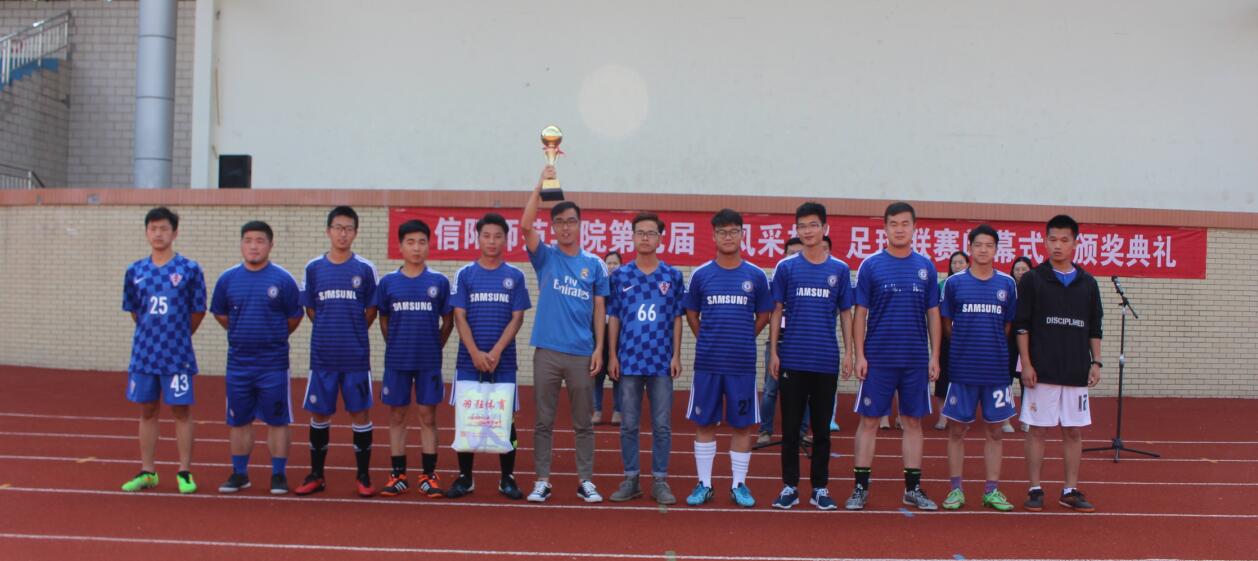 闭幕式上,许霏首先表示此次足球联赛的成功举办是对我校所具有的优秀体育文化传统、浓厚体育文化氛围的认可,对参加比赛的队员及幕后工作人员表示感谢,希望同学们经过此次比赛,继续发扬体育风格。随后,陈兴海宣布第七届“风采杯”足球联赛季军为数学与统计学院,亚军为商学院,冠军为太阳成集团tyc33455。最后,陈兴海为我院颁奖,我院代表队上台领奖。随着热烈的欢呼声和阵阵掌声,我院代表队员带着蓬勃的朝气快步跑上了领奖台,同学们高举奖杯一起合影留念。