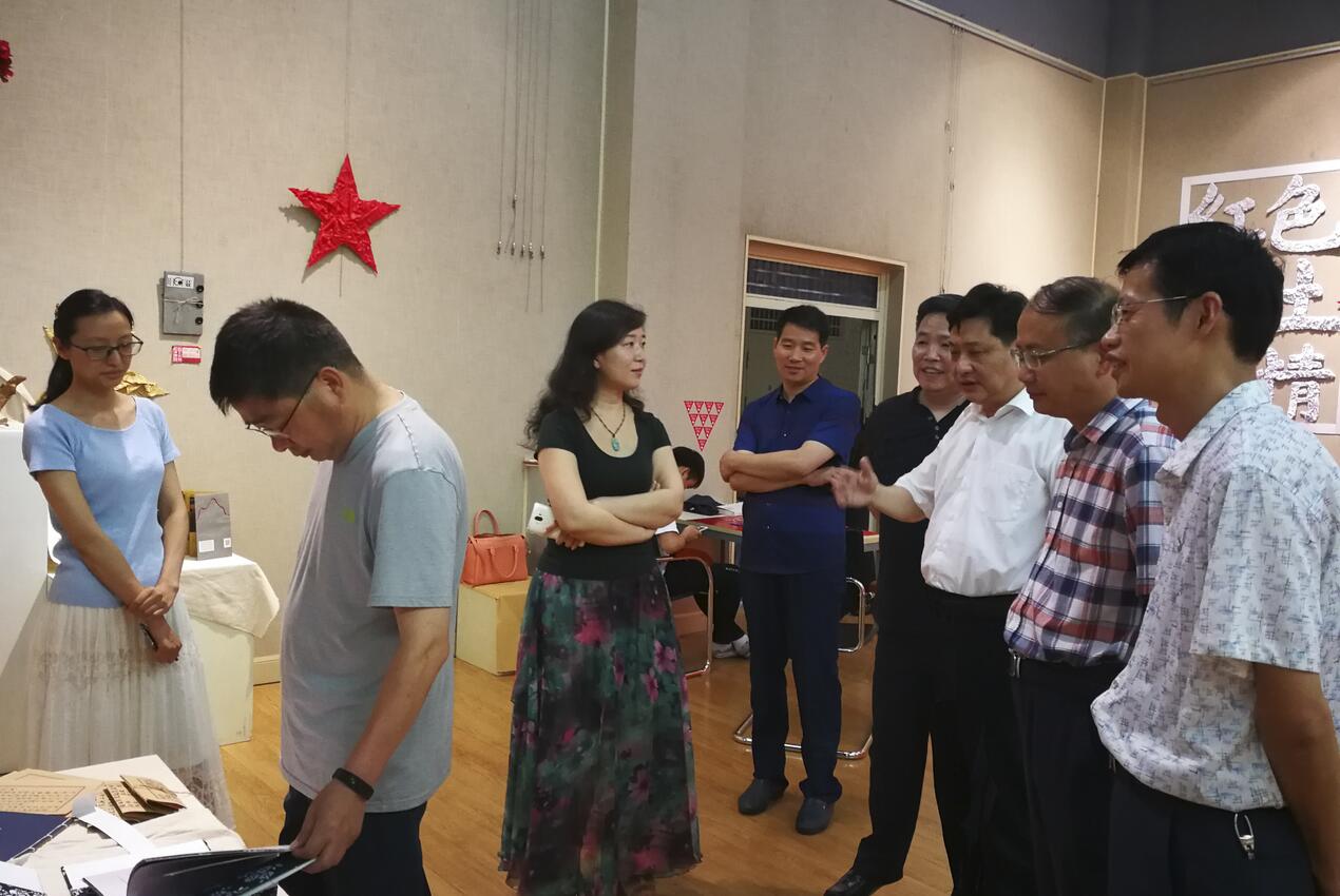 6月19日下午,信阳市文广新局副局长夏长江、杨国刚,信阳市博物馆馆长丁联合,信阳市鄂豫皖革命纪念馆馆长吴世儒等一行来太阳成集团tyc33455展厅观看了 “红色乡土激情文创作品展”。太阳成集团tyc33455副院长邹东升、张伟,展览指导教师郑蔚、刘焱等热情接待了他们并给予详细讲解。他们对展览给予高度评价,认为展览主题鲜明,有创新意识,很结合当前弘扬红色文化主旋律主题,接地气,文创产品设计的有新意,有个性。他们将安排单位相关专业负责人来我院联系共同开发文创产品,打造有特色的地域文化。
