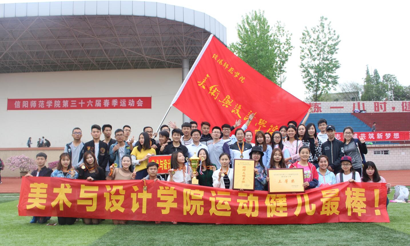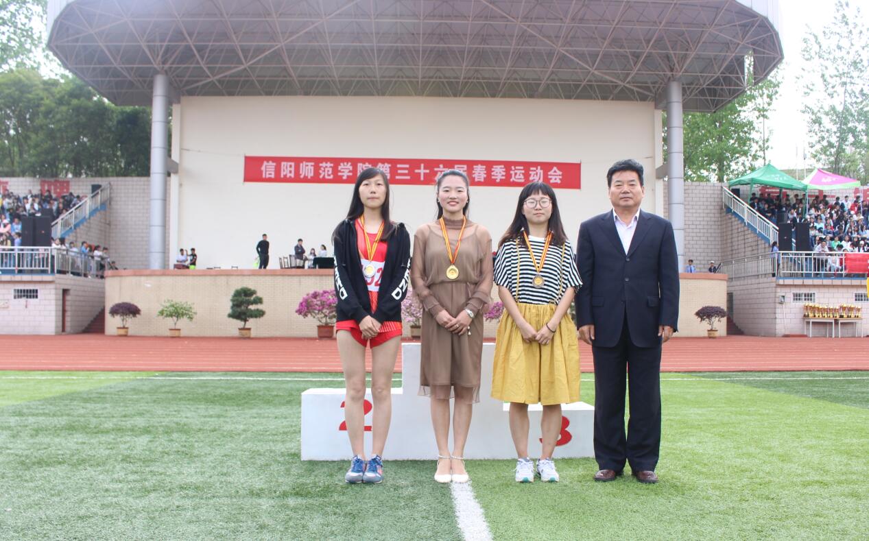 21日下午,信阳师范学院第三十六届运动会在西操场完美闭幕。校领导为获奖院系依次颁奖。我院荣获女子甲组团体第二名,精神文明单位,健美操三等奖的优异成绩。